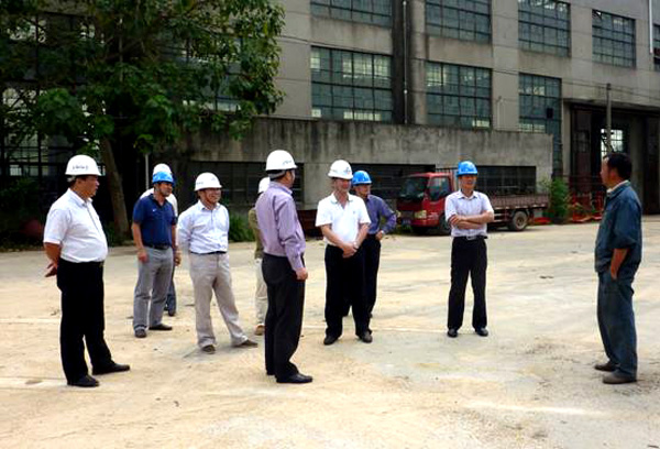 董事長(zhǎng)、總經(jīng)理王元旦一行在機(jī)械安裝公司門機(jī)拆解現(xiàn)場(chǎng)