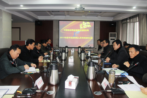 2015年1月31日,江西省水利水電建設有限公司2014年度年終述職大會在公司總部順利舉行。公司董事長、黨委書記王元旦,總經理徐洪良,國內、國外工作的中高層管理人員、項目經理代表,員工代表共50多人參加了述職大會。總經理徐洪良主持會議。