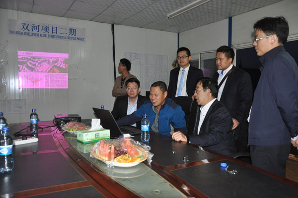 2016年7月22日,中非基金董事長遲建新一行,考察我司投資并參建的雙河項目。遲董事長對雙河項目表現出極大的興趣,不僅實地察看了雙河購物中心,還親臨項目部營地,聽取有關雙河項目建設及招商情況匯報,并就雙河項目投資收益及后續開發事宜與我司人員進行了交流。