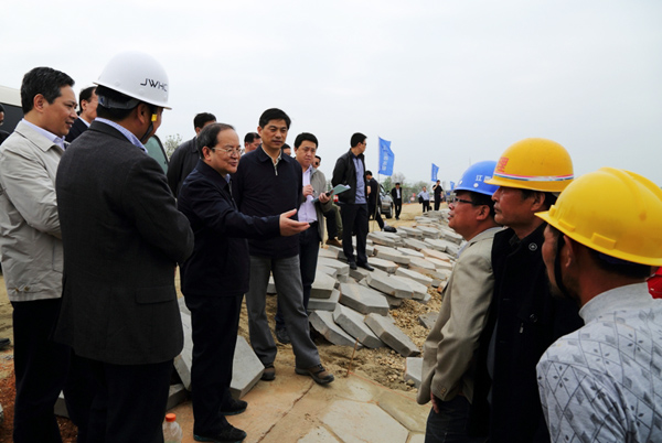4月15日上午,江西省省委副書(shū)記、省長(zhǎng)鹿心社來(lái)到我公司承建的鄱陽(yáng)湖區(qū)二期防洪工程第六個(gè)單項(xiàng)鄱陽(yáng)縣饒河聯(lián)圩除險(xiǎn)加固工程饒河1標(biāo)施工現(xiàn)場(chǎng)進(jìn)行視察調(diào)研。