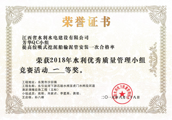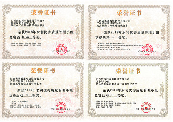 近年來,公司注重質(zhì)量管理創(chuàng)新,積極開展QC成果和技術(shù)攻關(guān)活動(dòng),工程質(zhì)量管理水平和企業(yè)創(chuàng)新能力不斷提升,已連續(xù)四年榮獲水利優(yōu)秀質(zhì)量管理小組競(jìng)賽活動(dòng)獎(jiǎng)項(xiàng)。