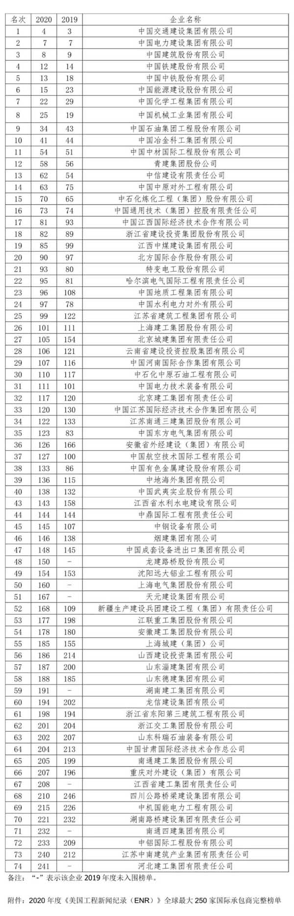 美國當地時間8月20日,2020年度美國《工程新聞紀錄(ENR)》“全球250家國際承包商”榜單發布。