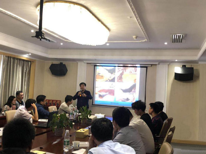 現(xiàn)場(chǎng)參觀結(jié)束后,學(xué)習(xí)團(tuán)參加了技術(shù)培訓(xùn)和經(jīng)驗(yàn)交流會(huì)。總經(jīng)理助理杜凌主持了開(kāi)班儀式。總工程師胡鴻煌、項(xiàng)目副經(jīng)理李成,對(duì)洋前壩水庫(kù)的大壩總布置、大壩施工導(dǎo)流、大壩及供水管道施工技術(shù)細(xì)節(jié)等,通過(guò)文字、圖片、視頻等組成的PPT課件為學(xué)員授課,并就學(xué)員提出的問(wèn)題逐一進(jìn)行了解答。