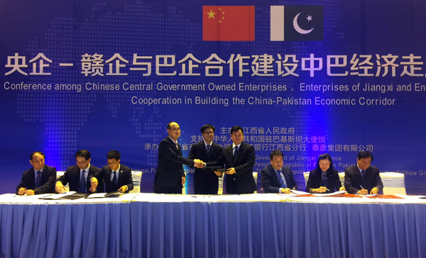 公司董事長王元旦與中國進出口銀行江西省分行、中國葛洲壩集團國際工程有限公司簽署巴基斯坦開伯爾-普赫圖赫瓦省350MW瑞開水電站項目戰略合作協議