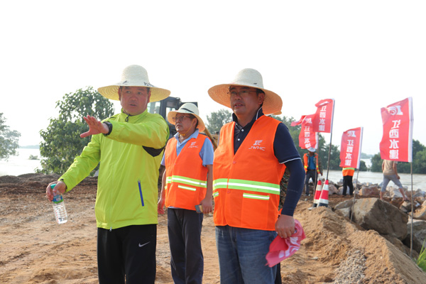 當(dāng)日下午,省委書記劉奇來到三角聯(lián)圩檢查指導(dǎo)江西水建的防汛救災(zāi)工作。他強調(diào),我們要深入貫徹習(xí)近平總書記重要指示精神,堅持人民至上、生命至上,以對黨和人民高度負責(zé)的精神,切實以戰(zhàn)時標準、戰(zhàn)時狀態(tài)、戰(zhàn)時紀律,壓實責(zé)任、勇于擔(dān)當(dāng),迎難而上、攻堅克難,抓嚴抓實防汛抗洪搶險救災(zāi)各項措施,盡最大努力保障人民生命財產(chǎn)安全。現(xiàn)場一線水建人員備受鼓舞,準備抱以最堅定的信念,完成這一偉大使命。