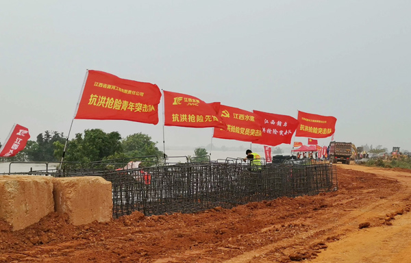 7月12日晚,九江市永修縣三角聯(lián)圩發(fā)生潰堤,決口長度100多米,洪水淹沒了圩堤內(nèi)紅旗村、永豐墾殖場等部分地區(qū)。公司在接到省防指和水利廳下達的防汛任務(wù)后,積極響應(yīng),緊急抽調(diào)并組建了一支90余人的專業(yè)隊伍,并迅速落實機械設(shè)備。由公司黨委書記、董事長王元旦親自帶隊,星夜馳援一線。